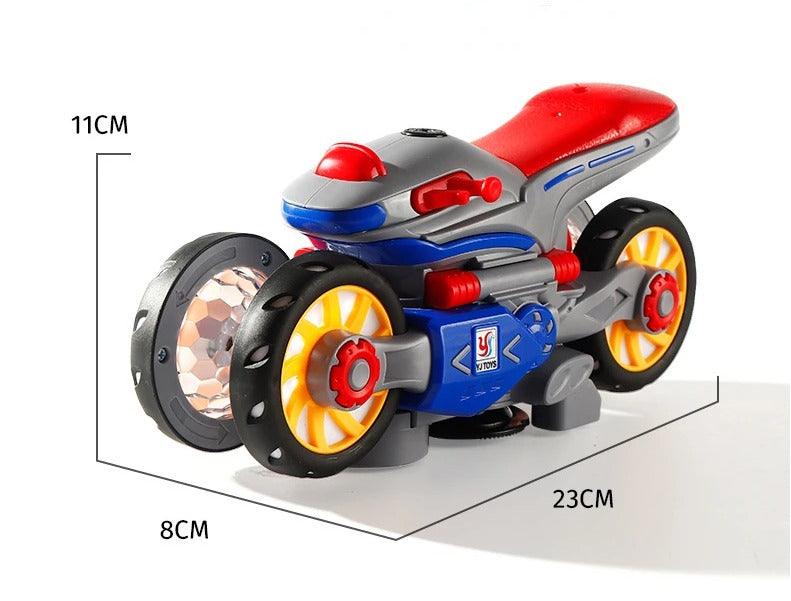 - 【Flexível e emocionante】 Os brinquedos musicais de motocicleta vêm equipados com elementos giroscópicos e um sistema de direção avançado que permite que os brinquedos de carro musical para crianças realizem uma rotação de alta velocidade de 360° automaticamente quando as rodas giram para cima. Este brinquedo sensorial é uma experiência emocionante e divertida que estimula a imaginação e a criatividade nas crianças.