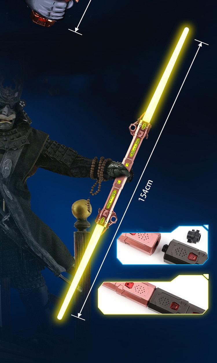 Uma Espada Laser pode ser jogada separadamente. Duas Espadas Laser podem ser combinadas em uma.
