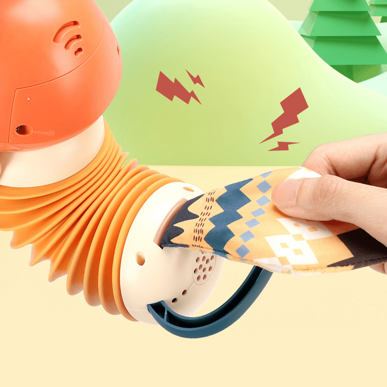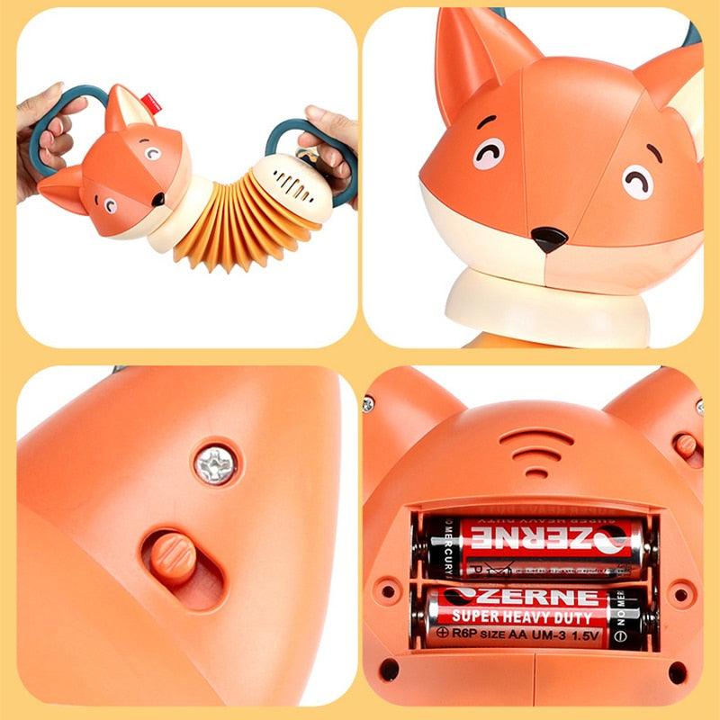 Projetado com alças fáceis de agarrar, é perfeito para as mãozinhas brincarem, macio e fácil para os bebês empurrarem e puxarem. Quando o bebê puxa o brinquedo ele emite sons de sanfona, ao agarrar o rabo o chocalho do papel traz um farfalhar diferente para estimular os sentidos do bebê. Toque no corpo da raposa e ela fará efeitos sonoros divertidos. Pressione o nariz da raposa para tocar as músicas favoritas do seu bebê.