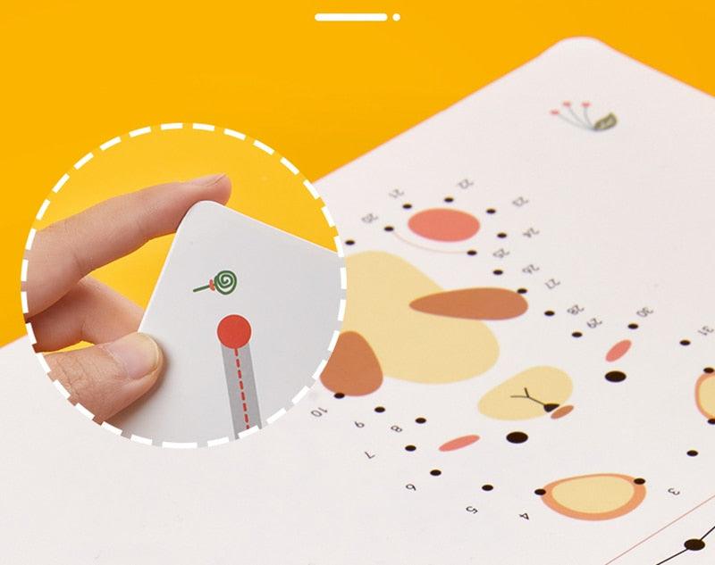 No livro, páginas de exercícios de traçado de linhas de concentração alternam com páginas para colorir. Ilustrações de imagens cuidadosamente projetadas convidam você a traçar as linhas das figuras.