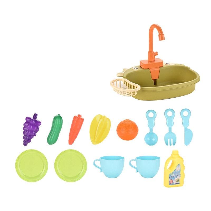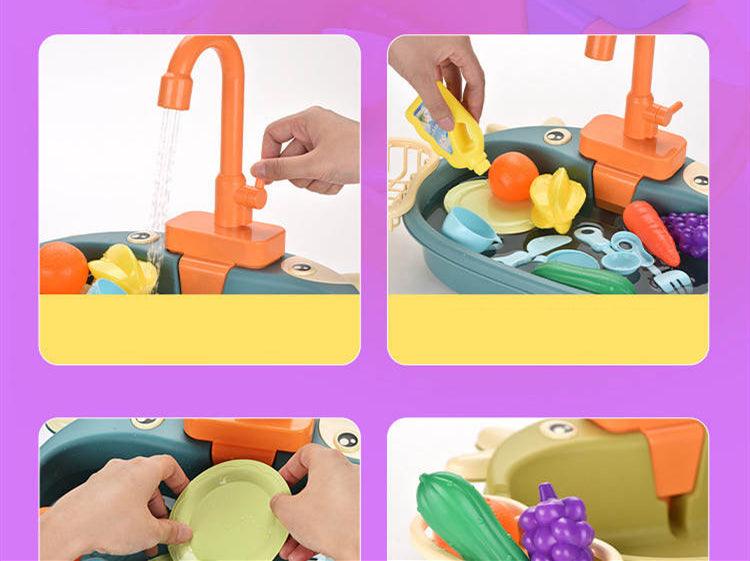 Ah, e não podemos esquecer que o brinquedo usa água de verdade mas não requer instalação hidráulica e nem desperdiça água. Ele tem um sistema a pilha que recircular a água que já está na pia, sendo totalmente portátil e fácil de usar.