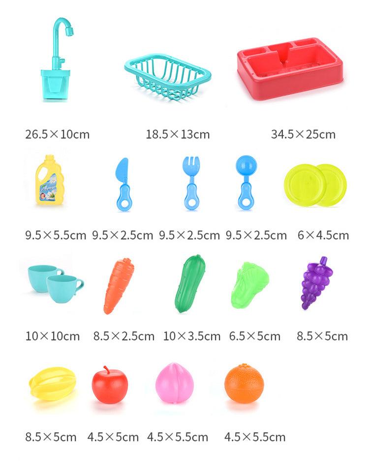 Para aumentar a diversão, todos os utensílios estão incluídos. Prato, faquinha, garfinho, embalagens de detergente, legumes diversos e muitos mais. Muito legal, não é?