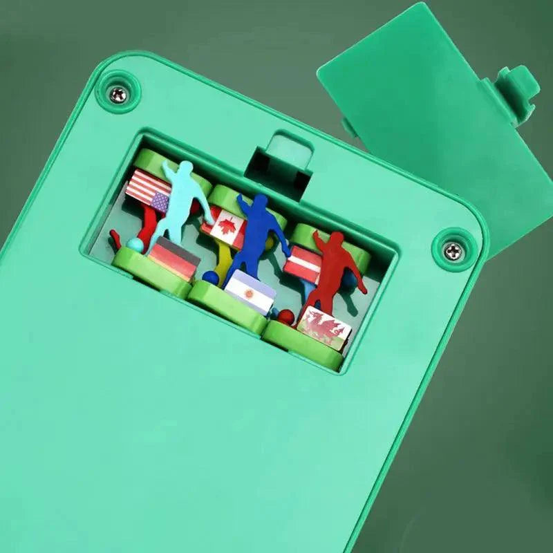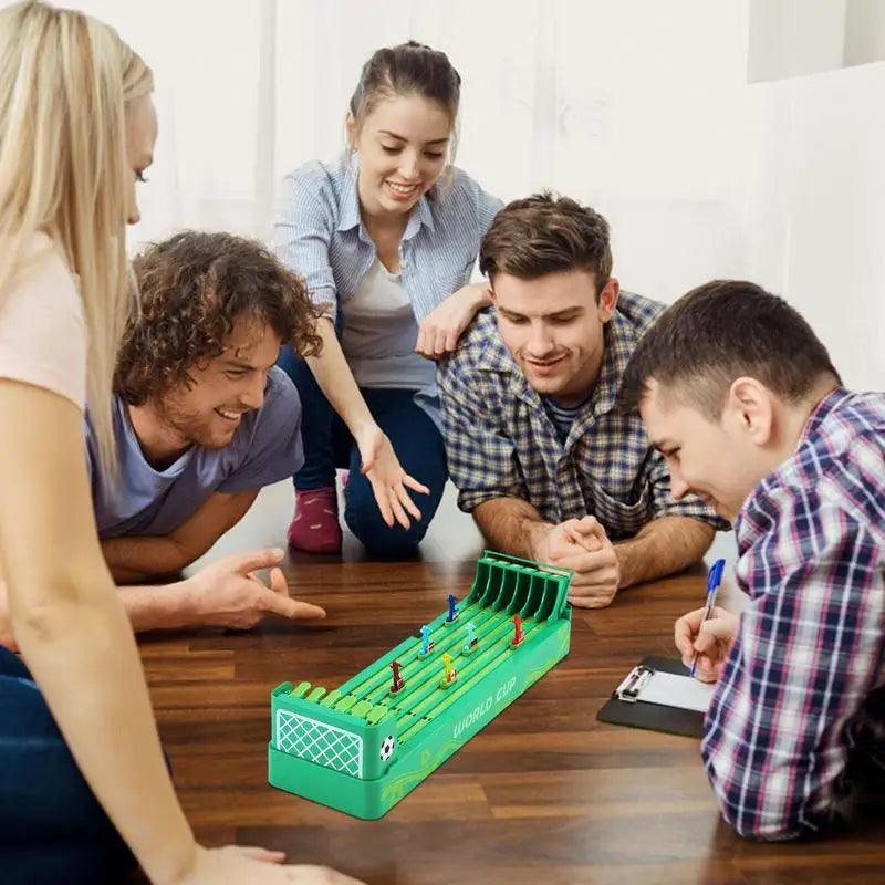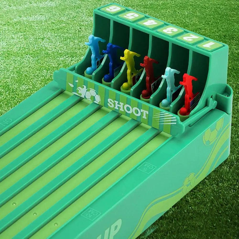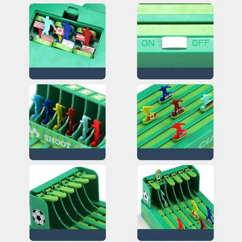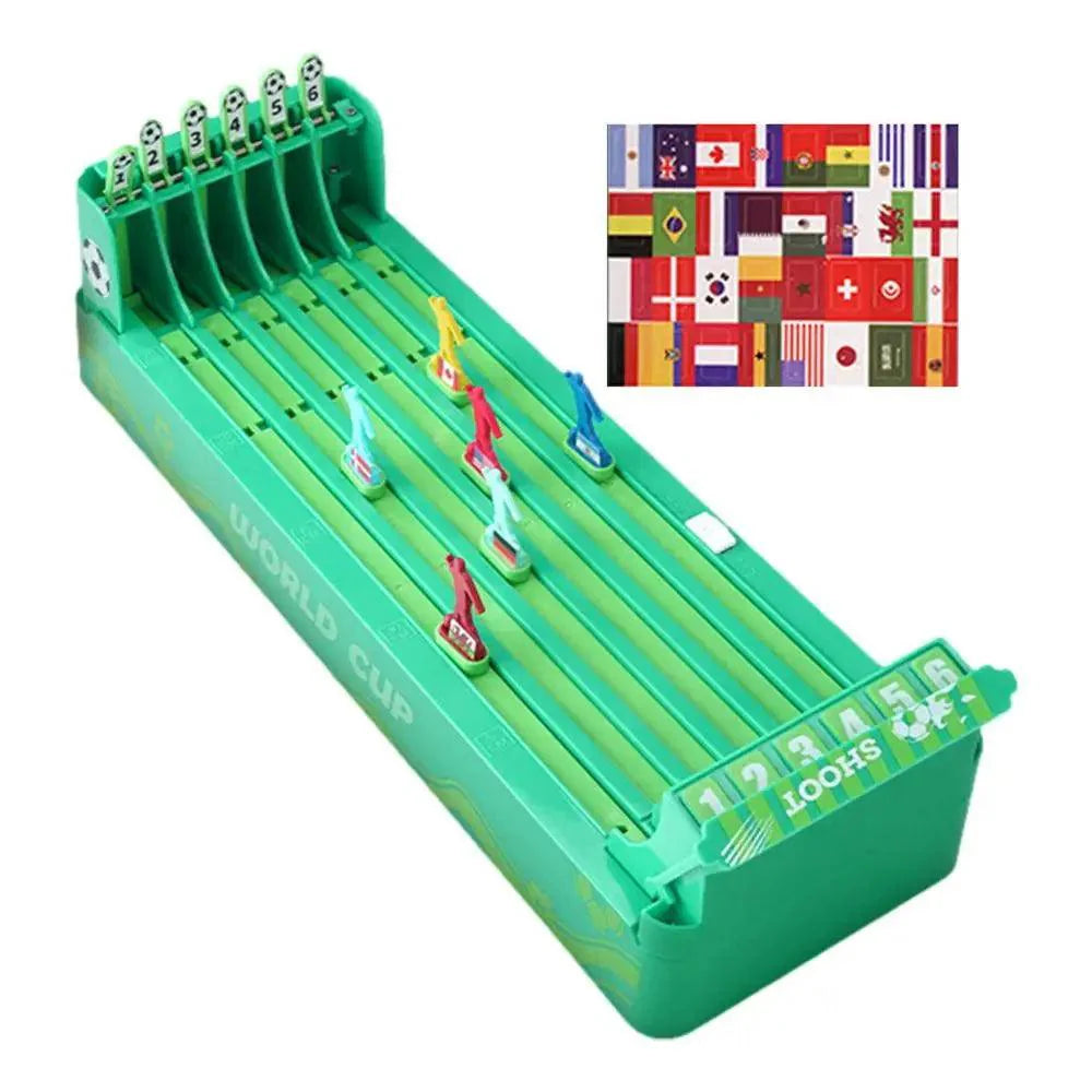 Este jogo de mesa em miniatura vem com seis cavalos.