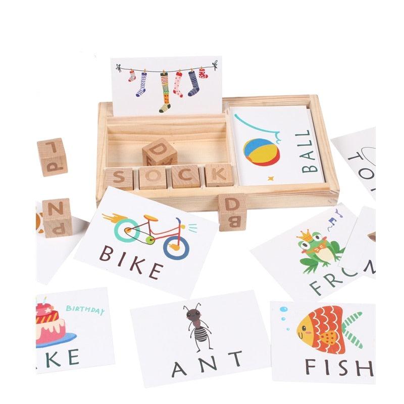 - Inclui 8 cubos/blocos, 30 cartas com 60 palavras para soletrar
