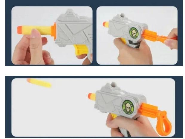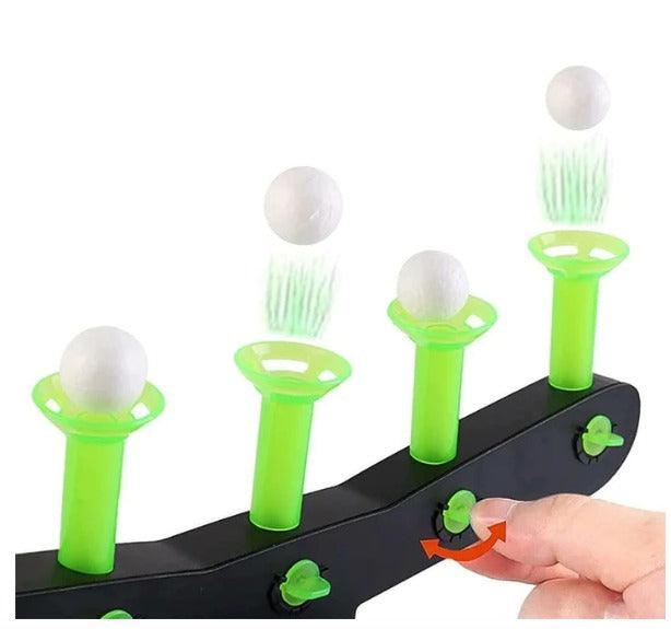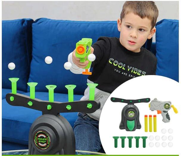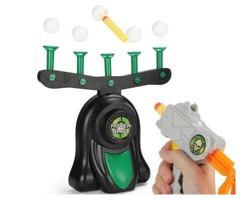 É diferente dos jogos de rebatidas comuns. Este produto possui uma máquina de levantar bolas, que pode fazer cinco bolas-alvo pairarem no ar. Segure a arma de bala de espuma e acerte os alvos flutuantes. Você pode se revezar para atirar no ar.