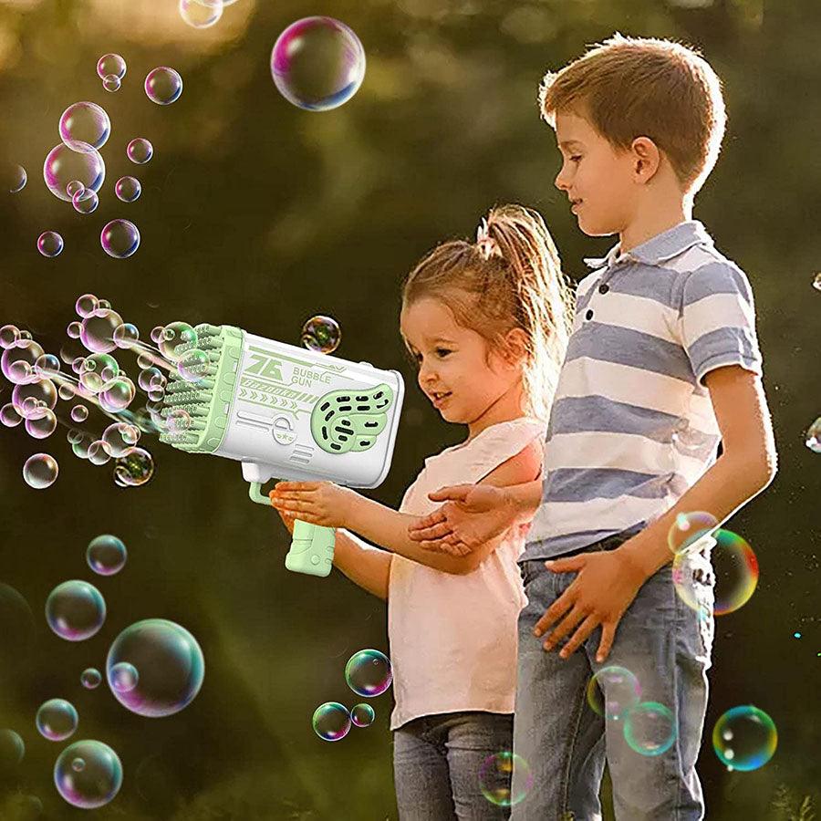 Fácil de usar - Basta mergulhar os bicos em água com sabão e pressionar o gatilho para liberar as bolhas. Repita os mesmos passos quando as bolhas pararem de sair dos bicos.