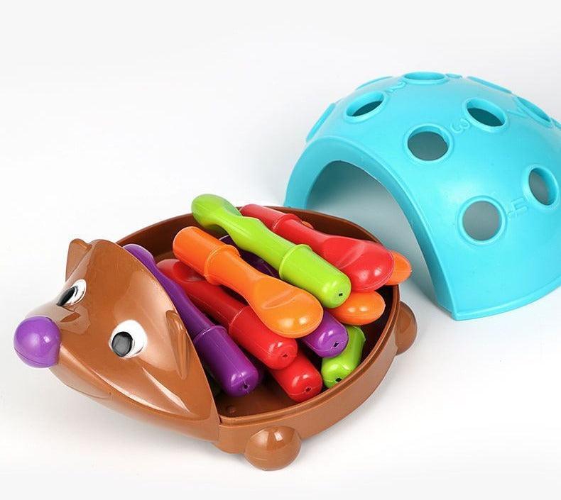Pincéis coloridos ajudam as crianças a desenvolver habilidades de reconhecimento, classificação e contagem de cores por meio de brincadeiras de habilidade motora fina. Ouriço também é um ótimo brinquedo para crianças com deficiência visual!